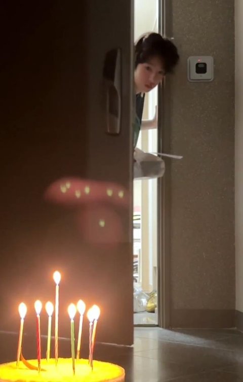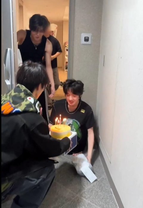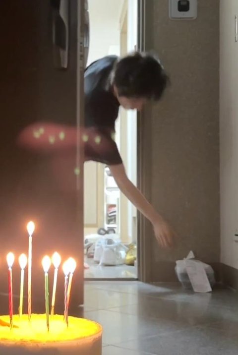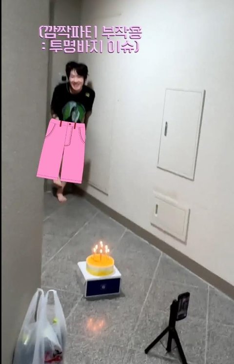 복도 불 켜지면서 멤버들이 생일축하합니다~~~ 노래 부르며 등장