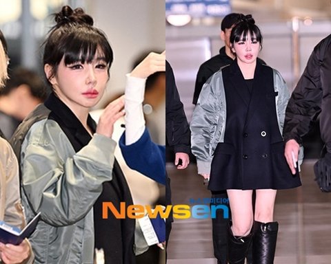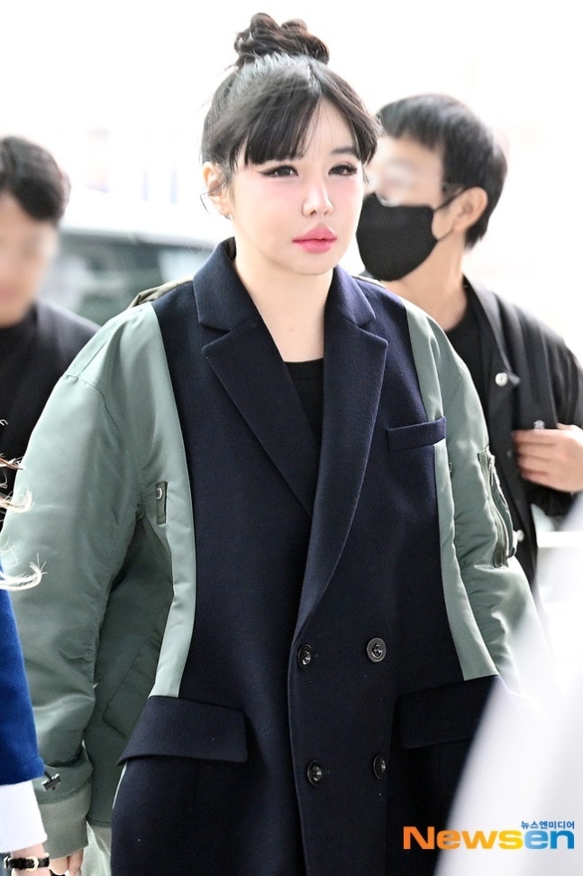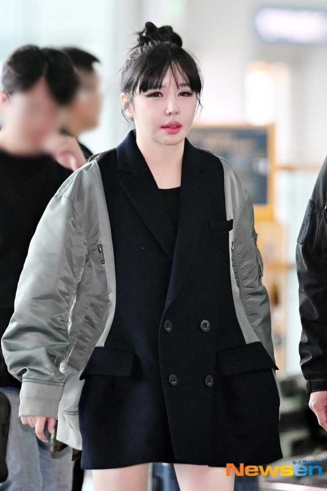 박봄이날 박봄은 발랄하게 올려 묶은 헤어스타일링에 유니크한 재킷 원피스를 착용하고 공항에 모습을 드러냈다.