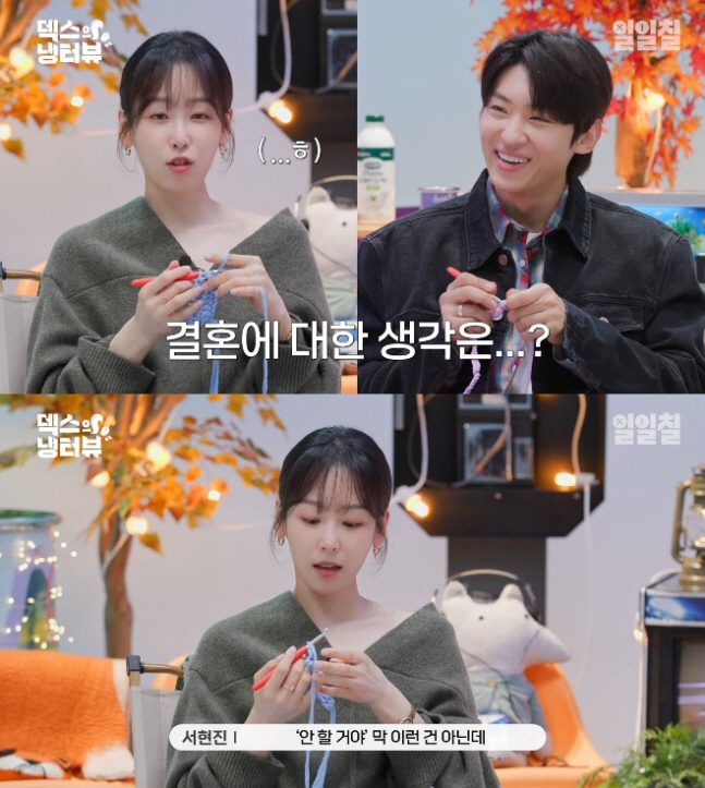이날 덱스는 서현진에게 결혼에 대한 생각을 물었다. 이에 서현진이 "안 할 거라는 마음은 아니다. 좋은 사람 있으면 할 것"이라고 말하자 덱스는 "나는 좀 진지하게 연애하고 싶다. 감정의 폭이 크지 않아서 그걸 여기저기 소비하고 다닐 자신이 없다. 오롯이 여자친구한테만 쓰고 싶다"고 자신의 연애관을 밝혔다.이에 서현진은 "완전 최고의 남자친구감"이라고 박수를 쳐 눈길을 끌었다.