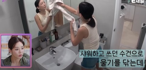 근데 나는 내 수건으로 변기 커버 닦고 거울 닦고 그러진 않고 청소용 행주? 가 따로 있음. 약품도 따로 있고. 근데 윤세아 저 분은 매일매일 저렇게 관리하며 사니까 그게 지저분하지가 않아서 저러는 거 아님? 묵혀뒀다가 수건으로 닦으려면 제대로 닦이지도 않고 지저분하겠지만, 매일 물자국만 닦으면 더럽지 않을 거라 봄. 객관적으로 누구나 봤을 때 비위생적인 것도 아닌데 반응이 좀… 윤세아님이 좋게좋게 잘 넘어가신 듯.