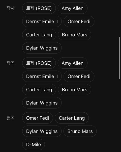 로제 자작곡이고 브루노마스가 프로듀싱에 참여