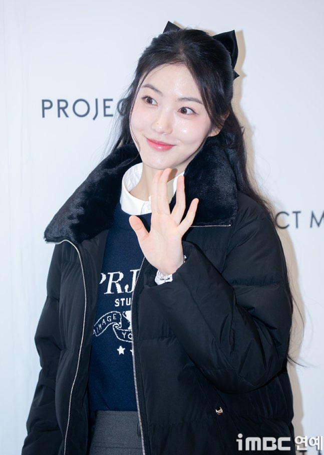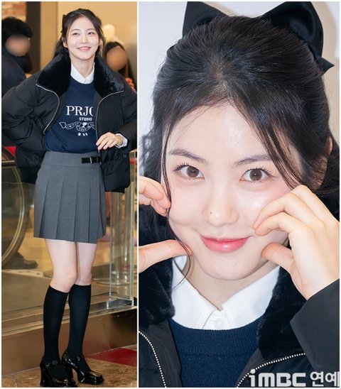 이날 신예은은 드라마 '정년이'에서 '허영서' 역으로 화제를 모아 수많은 팬들과 함께하는 시간을 가졌다. 신예은은 화이트 셔츠에 네이비 니트. 그레이 주름 스커트에 블랙 삭스와 엣지 넘치는 구두를 매치했다. 여기에 벨벳 소재의 라펠이 포인트인 숏 패딩을 입고 겨울 여친룩을 완성했다.
