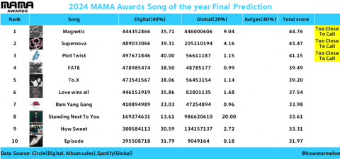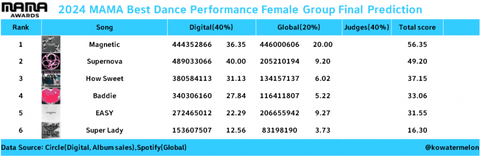 아일릿이 점수 7점차이 넘게 나는 상황이라 거의 확정수준이던 댄스퍼포머상까지 훔쳐갔는데