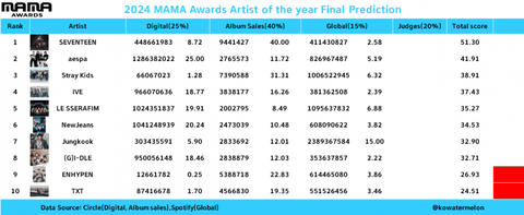 세븐틴이 에스파보다 점수가 25%나 높고 심사점수 비율도 20%밖에 안되는데 10점 차이나는 이걸 받으려고 생각했다는 것 자체가 걍 양심이 죽은거임