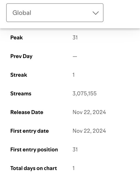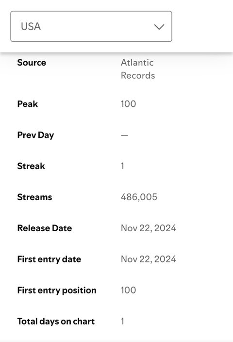 아파트만큼은 당연히 아닐거라고 생각은 했는데 생각보다 더 안 나옴....아파트 대박 히트 쳐서 리스너도 역대급으로 올랐고 앨범낸다고 리사나 제니처럼 홍보 때리고 바로 첫싱글 낸게 아니라 미국 현지 활동 (아이디나 페이퍼같은 할리우드 화보, 라디오, 예능 등) 충분히 돈 시점에서 본인 혼자 솔로 낸거고...여자 싱어송라이터라는 미국인들이 환장하는 sad bop으로 로드리고 느낌도 냈음 근데도 미포티가 리사 락스타랑 비슷하네 심지어 제니는 미포티 57윈가 그랬는데..