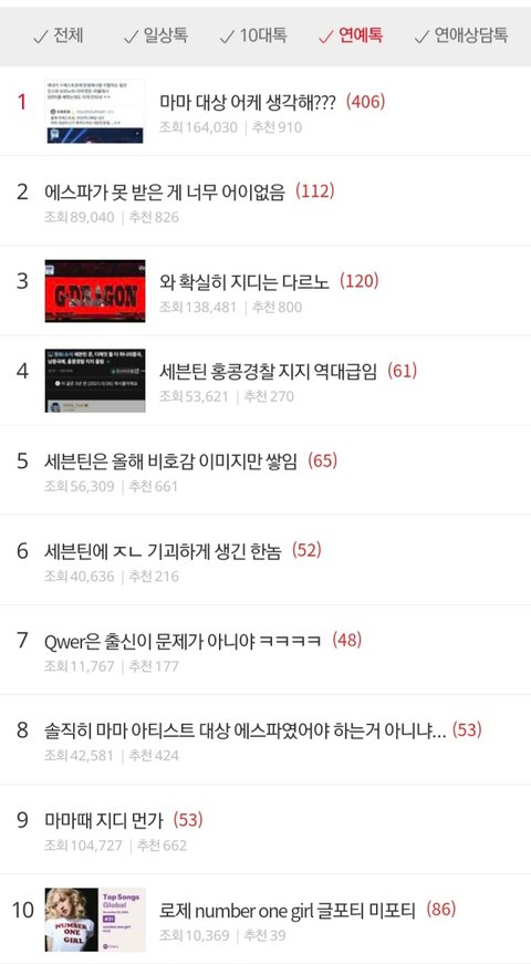Mama 끝난 결과가 이거네 ㅋㅋㅋㅋㅋ