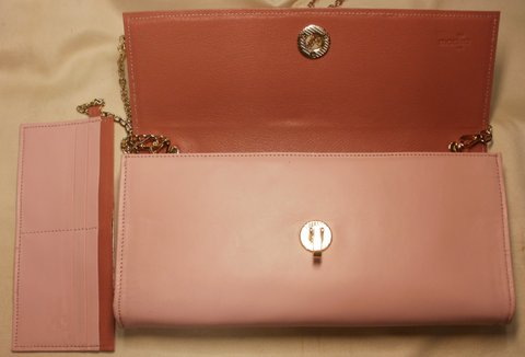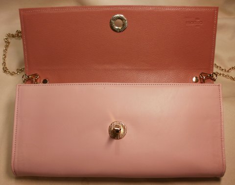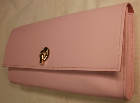 핑크 컬러 민무늬 양가죽으로 제작한 클러치백입니다.(마디샤가죽공예)