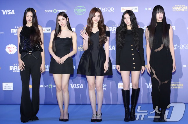 미야오 가원(왼쪽부터)과 안나, 엘라, 나린, 수가 23일 일본 오사카 쿄세라 돔에서 열린 '2024 마마 어워즈'(MAMA AWARDS) 레드카펫 행사에 참석해 포즈를 취하고 있다. 2024.11.23/뉴스1 ⓒ News1 권현진 기자