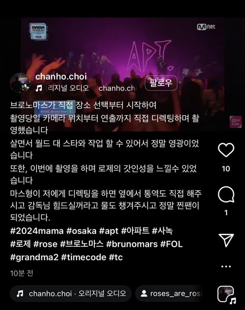 로제랑 브루노마스 나온다고 기대 엄청 하고 마마 본방사수 했을 사람들 꽤 있을 거임