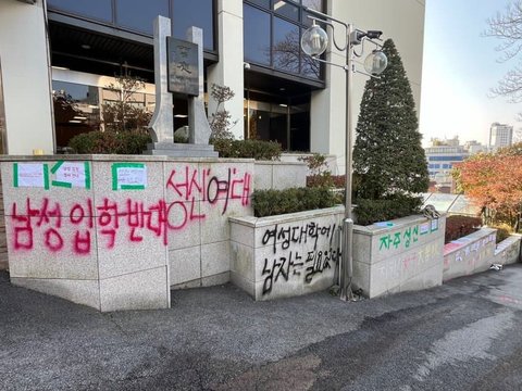 1. 동덕여대 보고 따라하고 싶어서 폭력 시위 개최: 락카와 페인트로 교내 전역과 아스팔트 도배, 남녀공학 철폐하라고 울부짖음