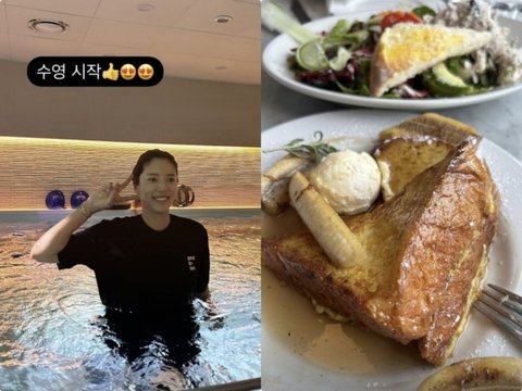 사진 속 손담비는 임신 중에도 꾸준한 운동으로 건강을 챙기고 있는 모습. 실내 수영장에서 물놀이를 하며 즐거워 하고 있다. 또 그는 수영을 마친 뒤 "많이 먹자"라며 브런치를 즐겼다. 그는 녹색 채소가 가득한 식단으로 영양소를 고루 챙겼다. 임신 18주 차에도 늘씬한 모습을 유지하고 있는 손담비의 철저한 자기관리가 시선을 끈다.