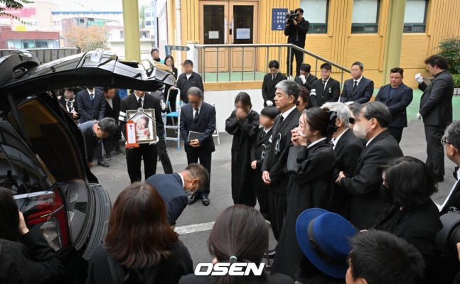 [OSEN=조은정 기자] 고(故) 김수미의 발인식이 27일 오전 11시 서울 성동구 한양대병원 장례식장에 엄수됐다. 고인의 비보는 지난 25일에 전해졌다. 이날 서울 서초경찰서에 따르면 故 김수미는 이날 오전 8시께 심정지가 발생해 서초구 가톨릭대학교 서울성모병원으로 이송됐으나 결국 사망 판정을 받았다.故김수미의 발인식이 엄수된 가운데 가족들이 마지막을 배웅하고 있다. 2024.10.27 /cej@osen.co.kr고부관계를 넘어선 사이였던 서효림과 故김수미. 때문에 갑작스러운 故김수미의 사망 소식은 더 충격적이었다. 서효림은 지난달 27일 엄수된 발인식에서 “엄마 가지마”, “엄마 너무 고생만 하다 가서 어떡해”라며 오열해 안타까움을 자아냈다.