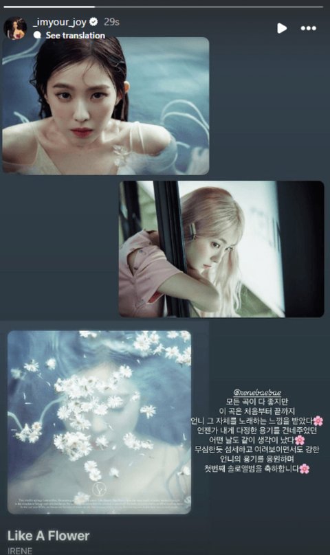 슬기, 조이, 예리는 솔로 축하 스토리 올렸는데