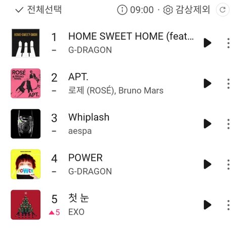 엑소 첫눈 멜론5위 역주행
