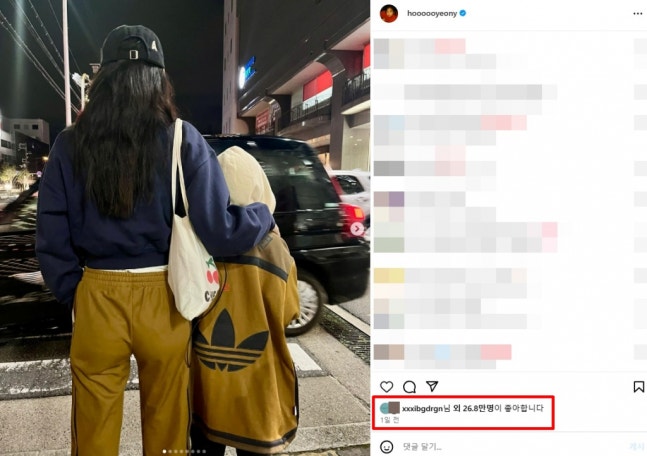 또 정호연이 자신의 계정에 조카와 놀러간 사진을 올리자 지드래곤은 이 게시물에도 '좋아요'를 표시했다.