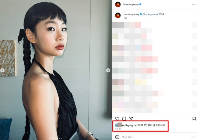 정호연은 지난 23일 일본 오사카 교세라 돔에서 개최된 '2024 마마어워즈 재팬'(2024 MAMA AWARDS JAPAN, 이하 '2024 MAMA')에 참석한 사진을 자신의 계정에 게재했고, 지드래곤은 '좋아요'를 눌렀다.