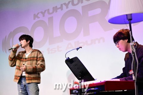 [마이데일리 = 곽경훈 기자] 27일 가수 규현이 서울 강남구 청담씨네시티에서 열린 첫 번째 정규 앨범 ‘COLORS(컬러스)’ 발매 기념 음감회에서 '어느 봄날'을 열창하고 있다. 'COLORS'는 규현이 지난 2014년 솔로 데뷔 후 처음 선보이는 정규 앨범이다.