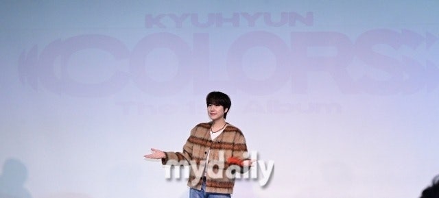 규현은 27일 오후 서울 강남구 청담씨네시티에서 첫 번째 정규앨범 '컬러스(COLORS)' 발매 기념 음감회를 개최했다. 진행은 방송인 유재필이 맡았다.