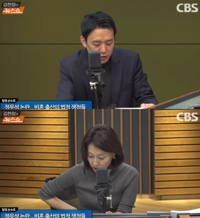 27일 방송된 CBS '김현정의 뉴스쇼'에서는 정우성이 쏘아올린 화두 '비혼 출생'과 법적 쟁점에 대해 다뤘다. 김현정 앵커와 함께 법무법인 '지혁' 대표 변호사 손수호 씨가 출연했다.