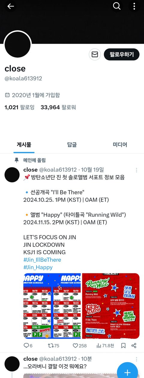 20시간 전 수제 트윗까지 내려봤는데 없네