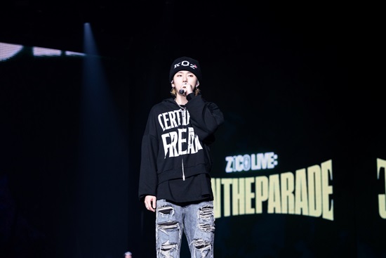 솔로 데뷔 10주년을 맞은 지코의 단독 콘서트 'ZICO LIVE : J-IN THE PARADE'가 24일 오후 서울 송파구 올림픽공원 올림픽홀에서 열렸다.