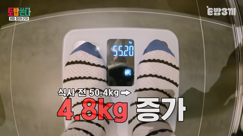 식사 전후 체중 비교해보니까 총 5키로 증가함
