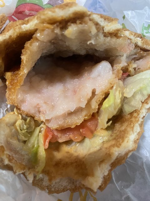 맥도날드 슈슈버거이고 손으로 만졌을때 질퍽하고 물기?도 있어서 사진찍고 그만먹었는데 어때보이나요