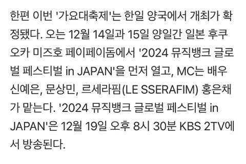 이번에 뮤직뱅크 글로벌 페스티벌 일본에서 mc 홍은채가 한다더라 은채 진짜 아꼈나봄