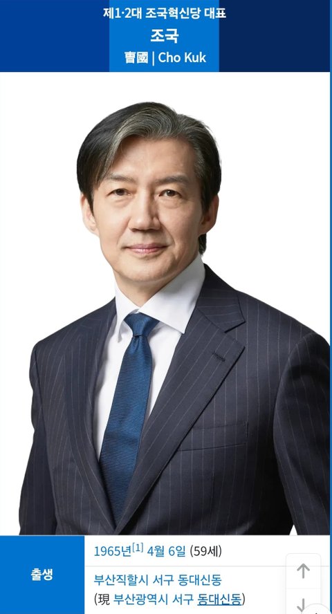 (사진2·3 설명) 조국(曺國, Cho Kuk) 제1·2대 조국혁신당 대표 <출처: NAVER 나무위키>