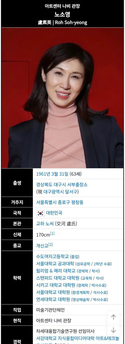 (사진5 설명) 노소영(盧素英, Roh Soh-yeong) 아트센터 나비 관장<출처: NAVER 나무위키>