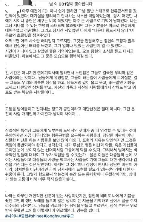 종현이도 설리도 스엠에서 케어 잘해줬으면 어땠을까ㅜㅜ 반듯한 성격이었나보네 안타깝다 정말