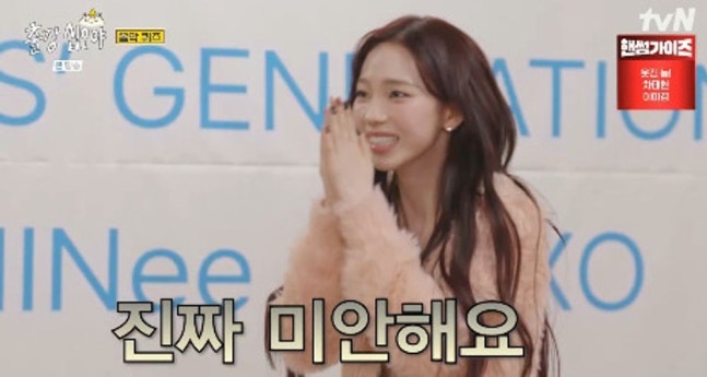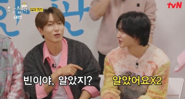 이어 베이비몬스터의 ‘쉬시’ 노래가 문제로 나온 가운데 상대 팀인 카리나가 먼저 대답할 기회를 얻자 라이즈 원빈에게 힙합 분위기로 어깨를 들썩이며 위협하는 포즈를 취했다. 이에 원빈 팀의 선배들은 “맞히면 맞혔지 애를 왜 기를 죽이냐” “싸우자는 거 아니냐”라는 반응했고 생각보다 큰 파장에 카리나는 “진짜 미안해요. 기분이 너무 좋아가지고”라고 급 사과했다. 이에 나영석 PD는 눈이 촉촉해지는 반응을 능청스럽게 지어 보이는 라이즈 원빈에게 “계속 (카리나가 했던)이 동작을 되뇌이신다. 카 선배님을 보고 어떤 생각이 들었나?”라고 물었다. 이에 원빈은 “진짜 상처 받았어요”라고 밝히며 능청 매력을 드러냈다.
