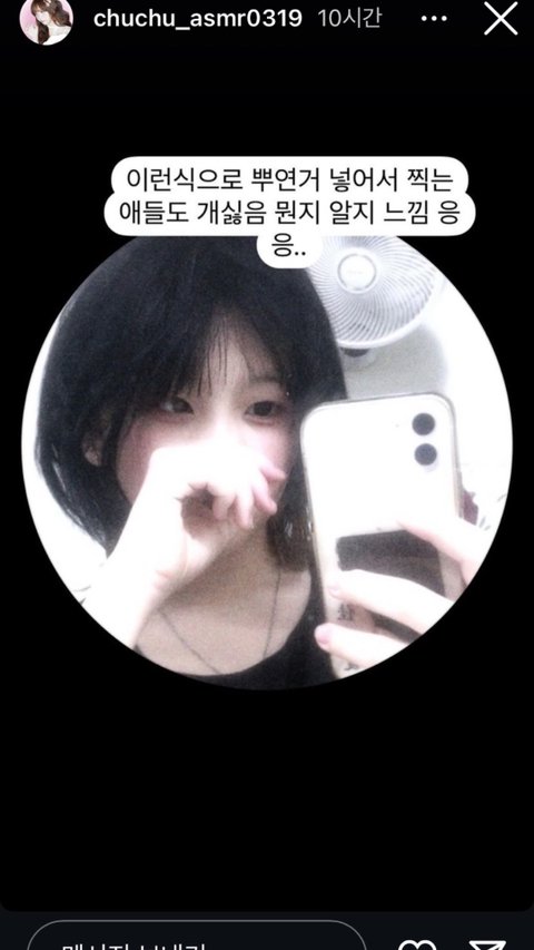안녕 나는 10대 여학생이야 다들 쿠킹미제라고 한번쯤 들어봤지??지금은 쿠킹미제가 아닌 츄츄asmr이라는 이름으로 유트브,틱톡,인스타,야동사이트에서 활발하게 활동하고있는 크리에이터야 최근에 츄츄asmr의 틱톡 계정에 먼지라는 고양이를 파양한다는 내용의 영상이 올라와서 약간의 화제가 되었어 문제는 츄츄가 영상에 나와 화장을하면서 반려묘 먼지를 일본에 데려가려했으나 데려가지 못했고 결국 아는언니에게 맡겼다 파영을 하게됐다는 내용인데 여기서 시청자들이 고양이와 한집에서 연초를 핀점, 웃으며화장을하며 영상을 찍은점,일본에 데려갈수있는 방법이 많은데에도 불구하고 고양이를 무책임하게 파양한점등을 지적했어 그중 한 댓글에 파영한다는걸 아주 정성스럽게 돌려말한다는 댓글이 있었는데 거기에 쿠킹미제가(츄츄) 잡으면 안될거같아서..라고 한 댓글에 내가 단 댓글로부터 이이야기가 시작되 그날이후 하루쯤 뒤에 틱 사진처럼 내 얼굴이 크게 박혀있었어 그래서 뭐하는짓이냐고 물어봤는데 읽질않네.. 공론화좀 시켜줘..