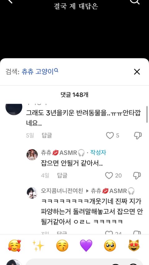 이거 쿠킹미제가 사과 안하면 고소할려고 근데 공론화가 안되어서 사과를 받을수도 없어 더 자세한 내용은 츄츄asmr 틱톡계정에가서 반려묘 먼지에대한 영상 시청해줘