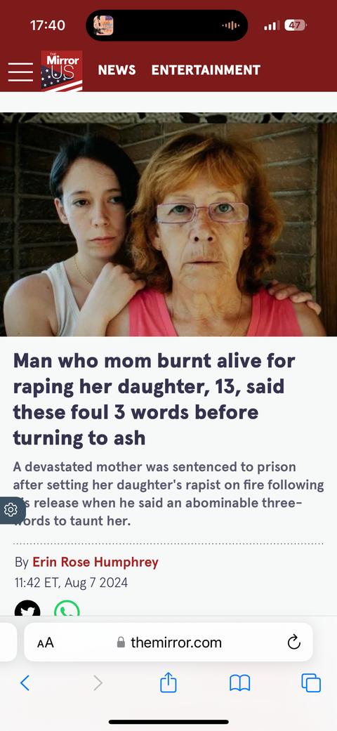 엄마가 술집에있던 그를 찾아가 기름을 콸콸 붓고난 뒤 바로 불질렀다함. 그새끼는 병원에서 며칠있다가 죽었다고.