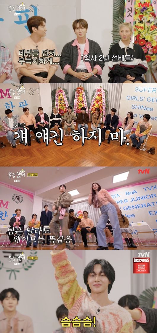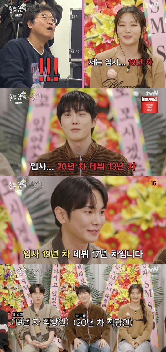무엇보다 레드벨벳 슬기가 입사 18년 차에 데뷔 11년차라고 하자 선배들은 깜짝 놀라는 모습을 보였다. 점점 데뷔연도가 올라갈수록 어마어마한 경력을 자랑하기 시작했다. 다음 차례인 엑소 수호는 입사 20년 차에 데뷔 13년 차, 샤이니 키는 입사 19년 차에 데뷔 17년 차라고 말했다.