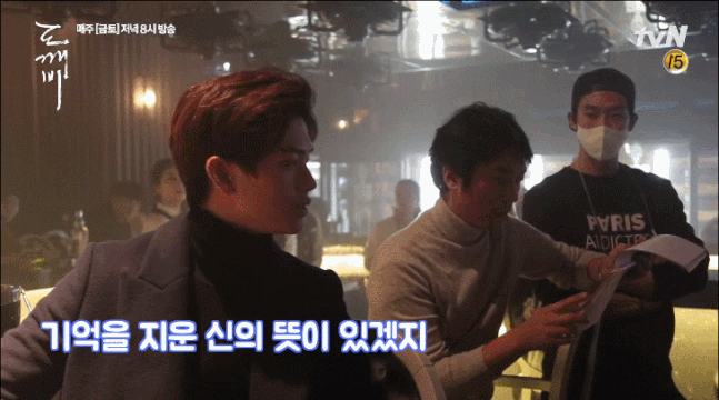 S : 특히 누가 '깨덕'(도깨비 덕후)이에요?"현식이 형이 제일 광팬이죠. 은광이 형은 숙소 불을 다 꺼놓고 '도깨비'를 정주행합니다. 혼자서 실실 웃으면서 말이죠."