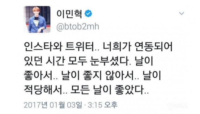 "우리 멜로디들! 새해 복 많이 받으시고요. 항상 감기 조심하고요. '육성재'를 많이 사랑해주셔서 감사합니다. 2017년에도 파이팅하세요."