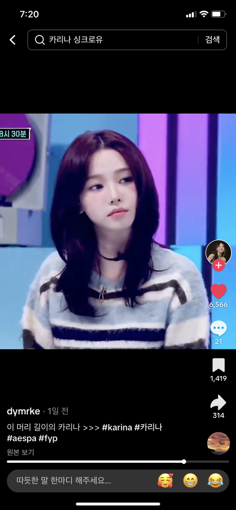 카리나 중단발 할때 유독 더 여성스러워지는 느낌이지 않음? 갠적으로 저 스타일링 완죤 맘에듦