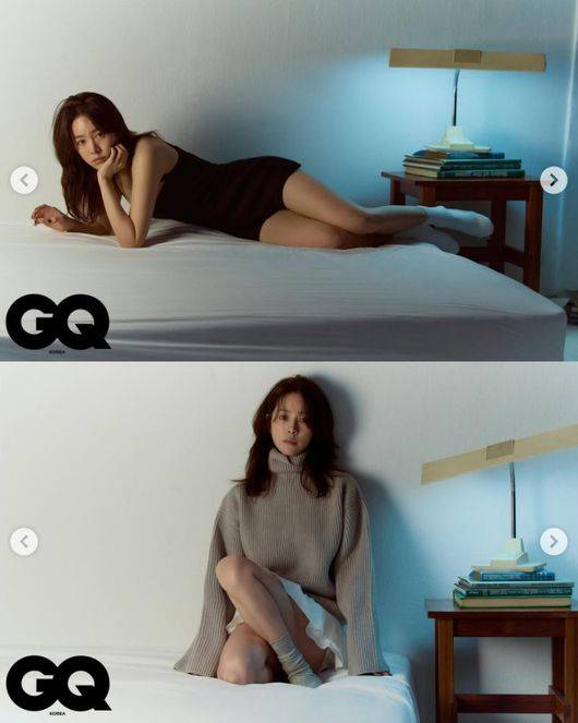 또 다른 사진에는 침대에 누워 포즈를 취하는 한지민의 모습이 담겨 있었다. 노출이 있는 검정색 의상을 입고 몸매를 그대로 드러내면서도 매혹적인 분위기를 완성했다. 한지민은 가을에 잘 어울리는 분위기로 미모를 자랑했다.