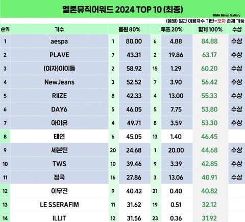 멜론 베스트송상 태연 후보에 뺐대...