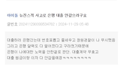 이제 동덕여대 사건을 본받아 본인 행동에는 책임이 따른다는 실전을 배울 차례네. 뉴진스는 책임을 다 하고있으니 해당사항이 없고ㅋㅋㅋㅋㅋㅋㅋㅋ
