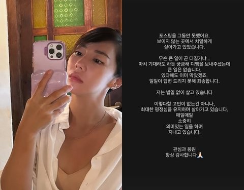 또 "저는 별일 없이 살고 있다. 이렇다 할 고민이 없는 건 아니나, 최대한 평정심을 유지하며 살아가고 있다"며 "관심과 응원 항상 감사하다"고 덧붙였다.