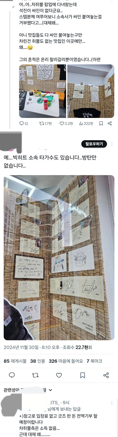 멤버가 자발적으로 한 일반 식당 싸인포함 자컨 싸인까지 내리게 한 전적도 있음 한 두 번이 아님
