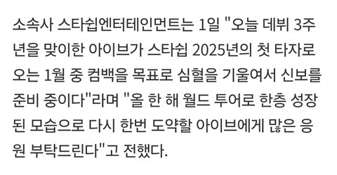 기사) 아이브 2025년 1월 컴백확정
