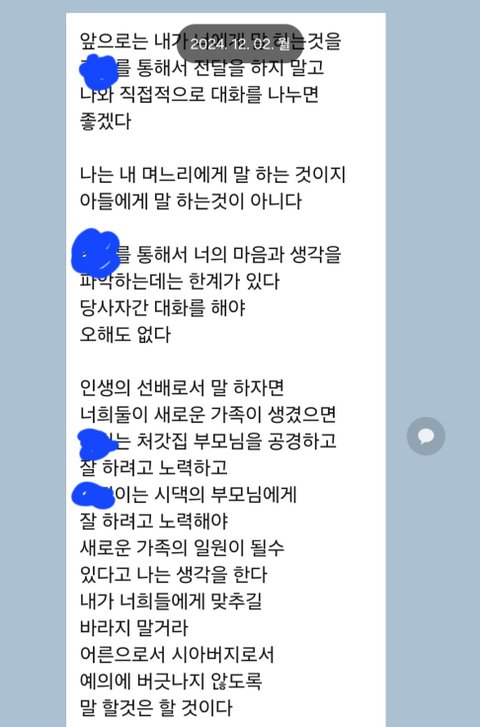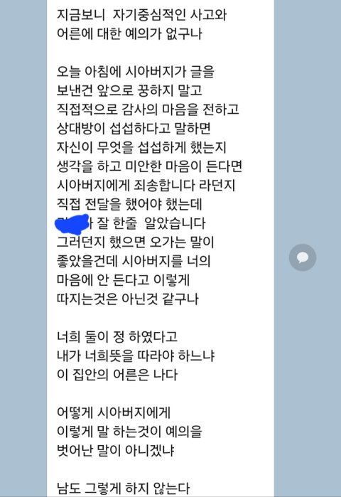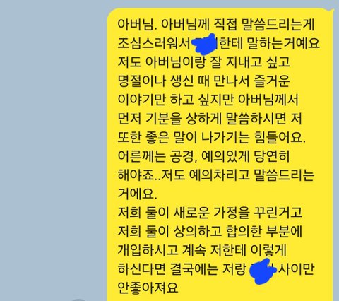 신랑한테 톡으로 그대로 보여주고 신랑이 시아버지께 뭐라하니까