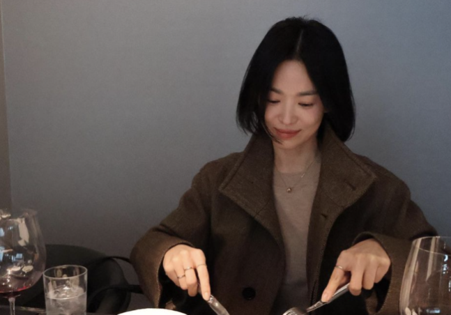 송혜교는 2일 자신의 SNS에 "예쁜 동생이 생일 밥 사준날♥ 사진도(최고)"란 글을 게재했다.