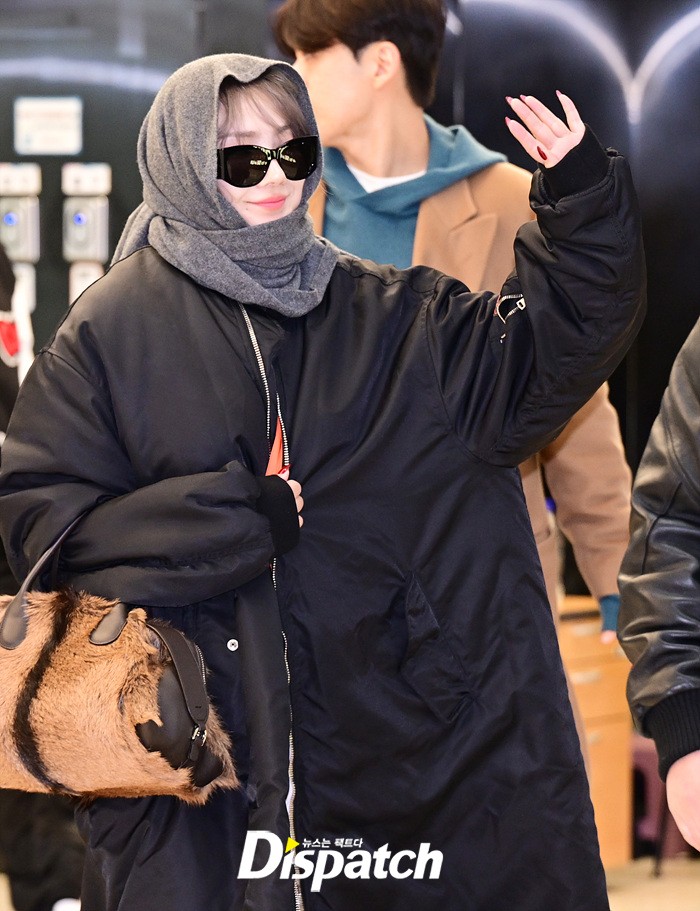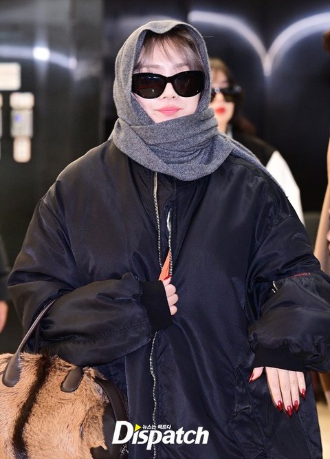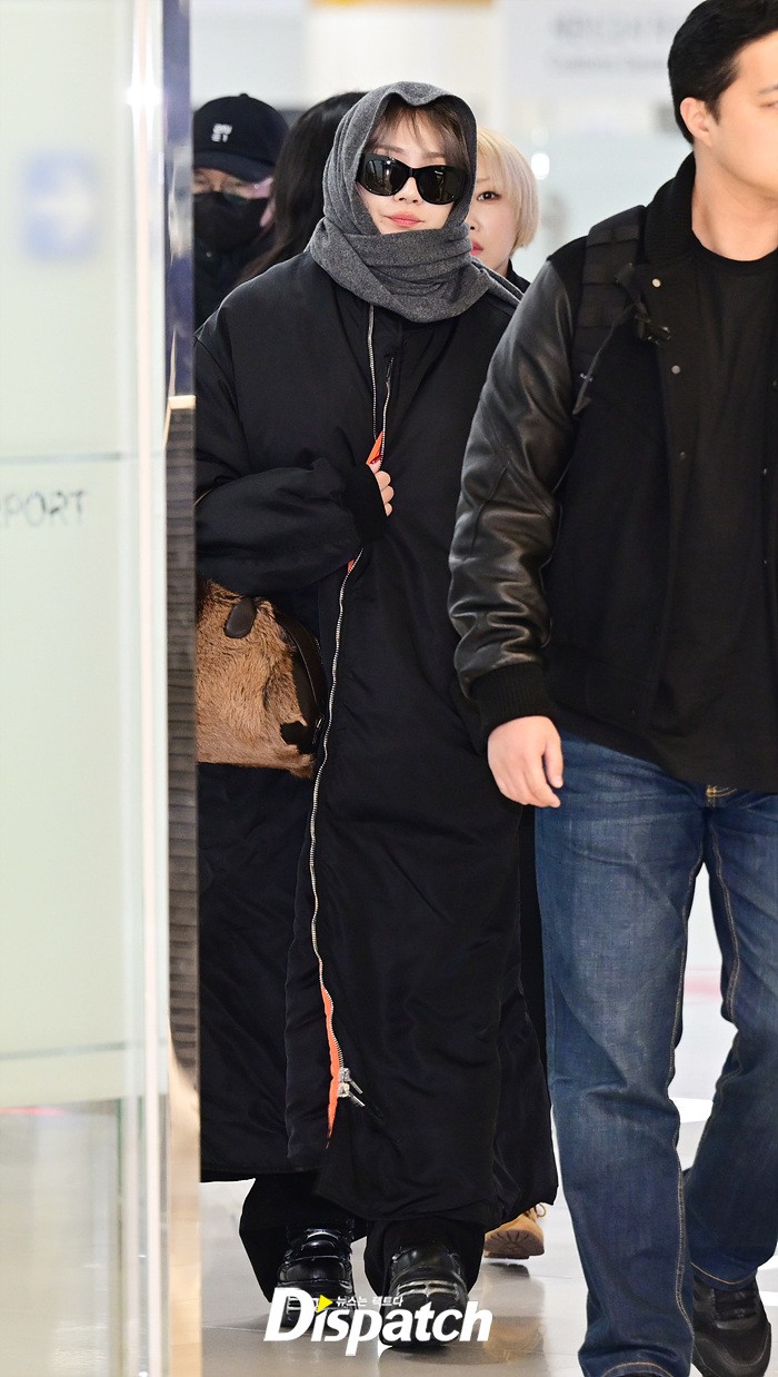 씨엘은 올블랙 스타일로 시크한 매력을 뽐냈다. 카리스마 넘치는 표정으로 입국장을 나섰다.