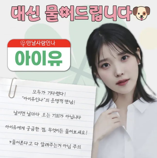지난 1일 유인나의 유튜브 채널 '유인라디오'에는 아이유가 콘텐츠 '만날사람인나'에 출연한다는 공지가 게재됐다. 공지에서 제작진은 '아이유에게 궁금한 점, 무엇이든 물어보세요!'라고 적힌 이미지를 업로드했다. 이 글은 게시 15시간 만인 2일 오전 기준 댓글 1800개를 돌파했다.