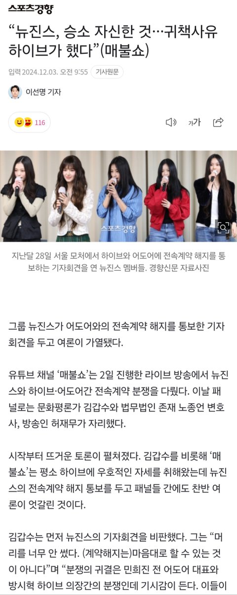 “뉴진스, 승소 자신한 것···귀책사유 하이브가 했다”(매불쇼)